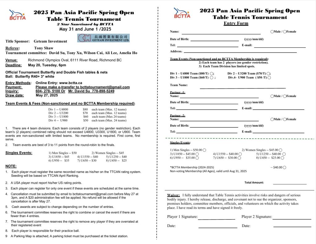 Thanks for your registration for the 2025 Pan-Asia Pacific Spring Open. Please check the Schedules and Player Line-up carefully, make sure your name, provincial and participating events are correct. If there is any mistake, please contact us by email as soon as possible.
