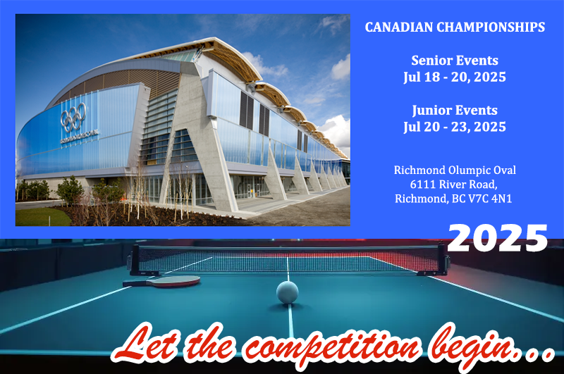 The 2025 Canadian Senior National Championships will be held at the Richmond Oval on July 18 – 20. Anyone who wishes to compete in the tournament, please register online and E-transfer the payment to BCTTA. TTCAN will accept entries from each province only.